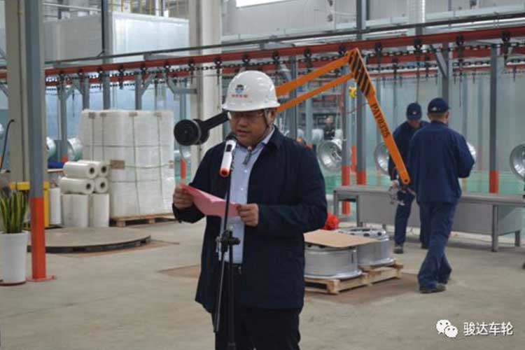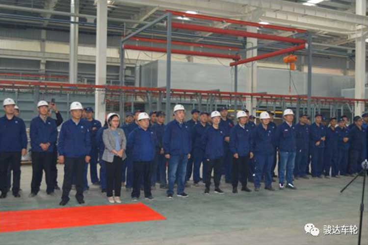 2019年10月9日,濟(jì)寧駿達(dá)機(jī)械制造有限公司舉行新項(xiàng)目涂裝線順利開線儀式。上午10:58一只鋼圈成功下線,公司總經(jīng)理苗總參加下線儀式并做了重要講話。公司其他高管以及100余名員工參加儀式。