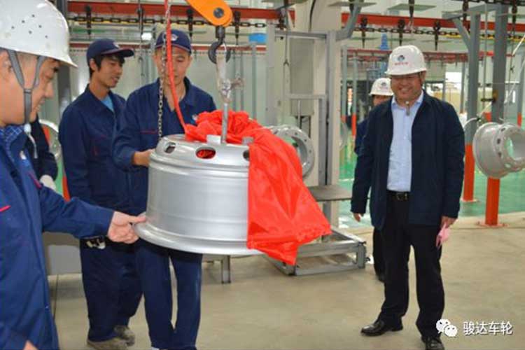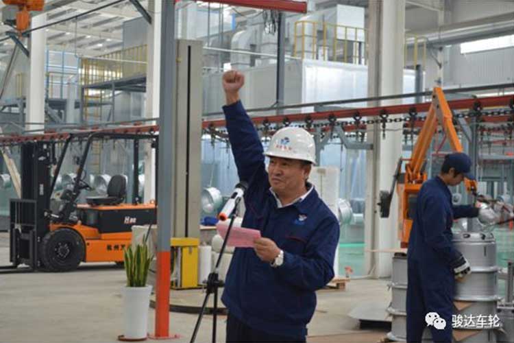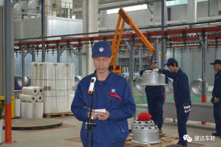 2019年10月9日,濟(jì)寧駿達(dá)機(jī)械制造有限公司舉行新項(xiàng)目涂裝線順利開線儀式。上午10:58一只鋼圈成功下線,公司總經(jīng)理苗總參加下線儀式并做了重要講話。公司其他高管以及100余名員工參加儀式。